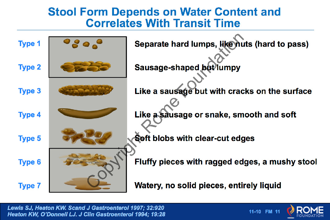 Bowel 010 – Stool Form Depends on Water Content and Correlates with Transit Time