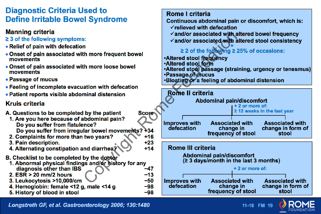 / Bowel 016 – Diagnostic Criteria Used to Define IBS