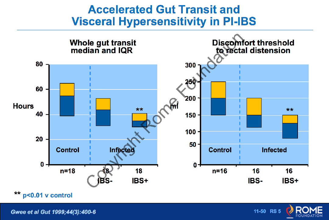 Bowel 050 – Accelerated Gut Transit and Visceral Hypersensitivity in PI-IBS