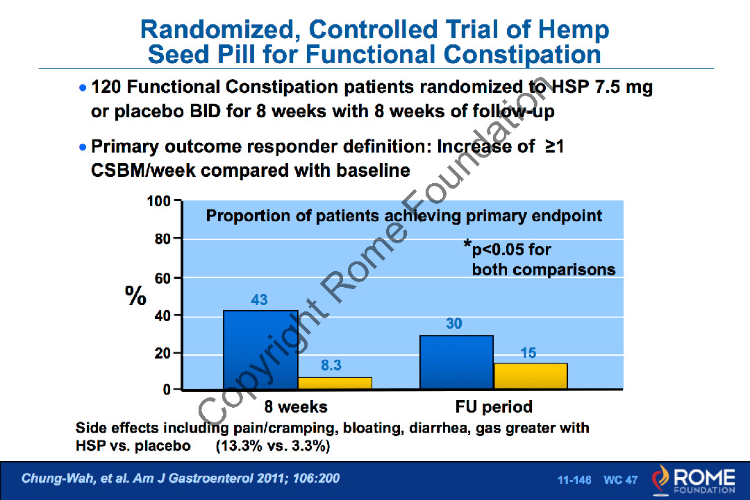 / Bowel 146 – Randomized Trial of Hemp Seed Pill for Functional Constipation