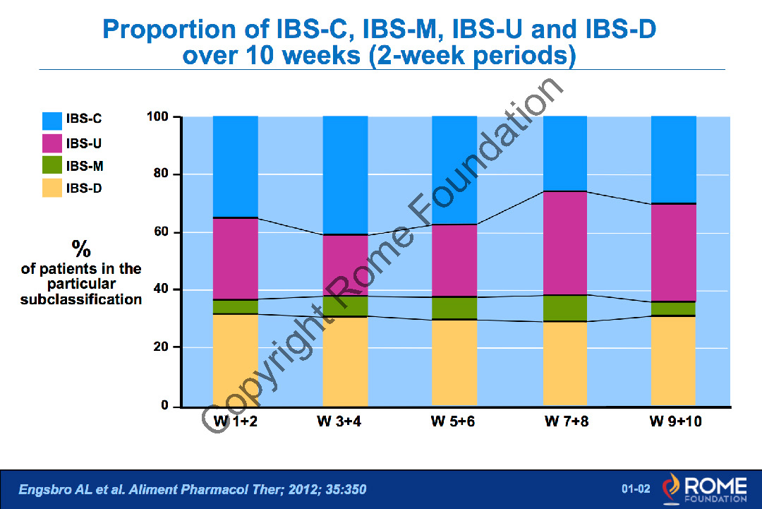 / 01-02 – Proportion of IBS-C, IBS-M, IBS-U, and IBS-D over 10 weeks